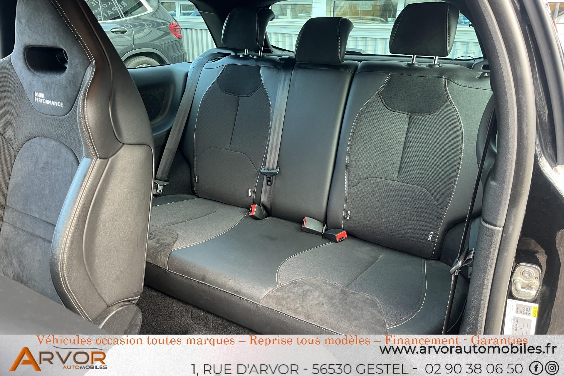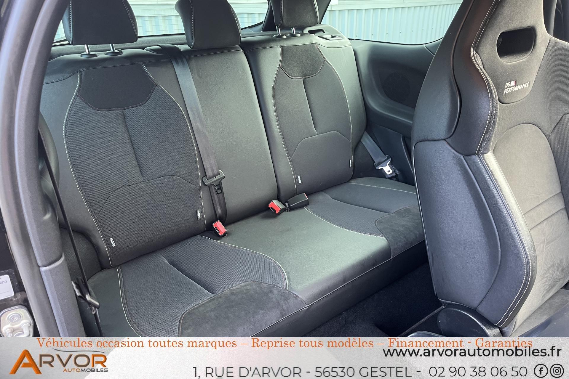 ABSaccoudoir centralallumage automatique des feuxApple car playbanquette 1/3 - 2/3bluetoothclimatisation automatiqueContrôle dynamique de stabilité (ESP)détecteur de pluieDS Connect Box avec Pack SOS et assistance inclusESPfermeture centraliséeFeux arrière 3D à LEDfixation isofixGPS couleurKit mains libres Bluetooth et prise USBlimiteur de vitessePack AutoPrise 12 volts à lrégulateur de vitesserétroviseurs électriquesSiège conducteur réglable en hauteurSièges baquet en tissu Alcantara DS Performancevitres électriquesVolant réglable en hauteur et en profondeur