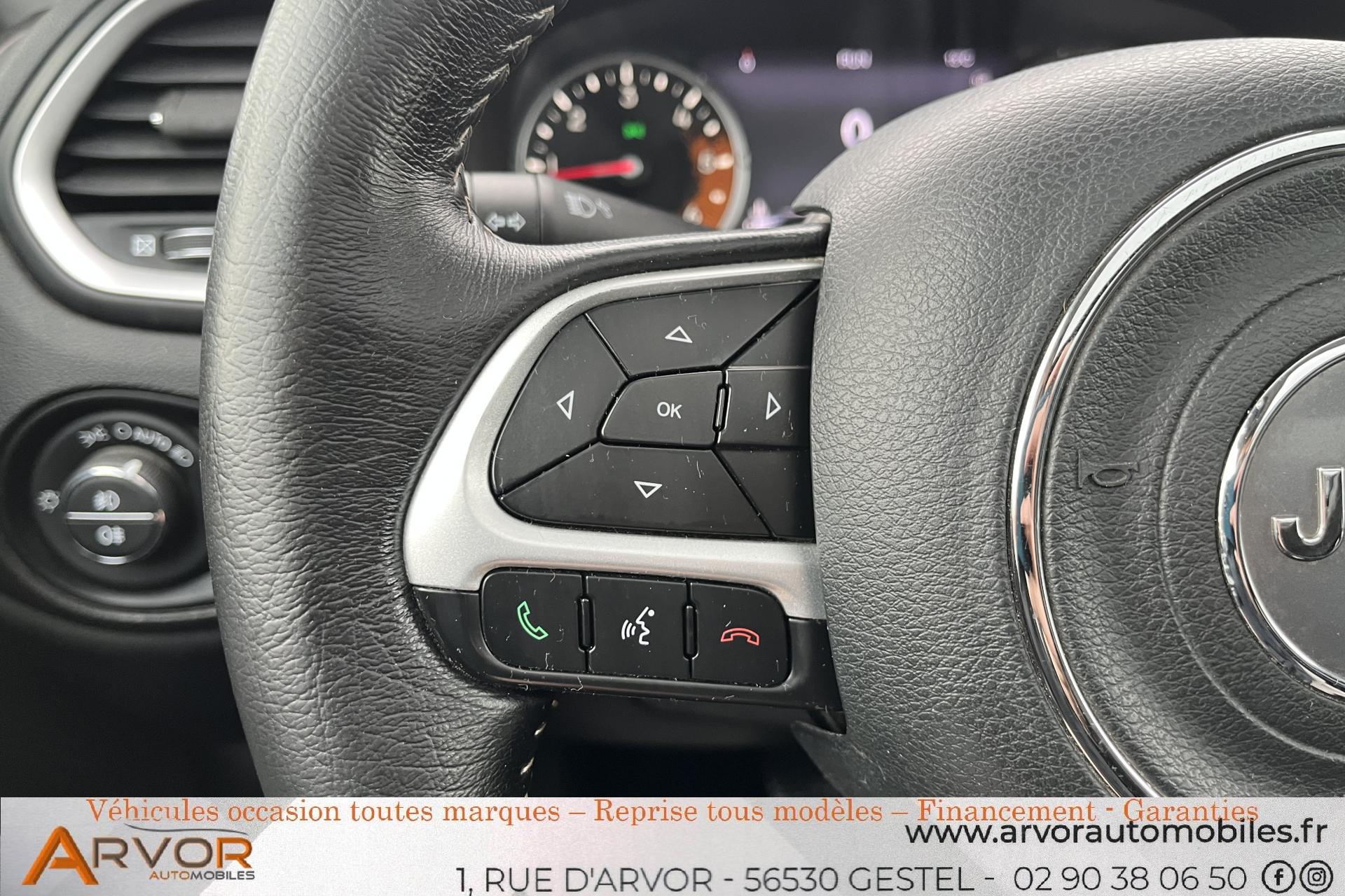 Avertisseur de perte de pression des pneusAide au stationnement arrièreallumage automatique des feuxattelagebluetoothcaméra de reculCapteur de pluieClimatisation automatique bi-zoneContrôle dynamique de stabilité (ESP)Direction assistée électriqueKeyless Access’ et ‘Easy Open/Easy Close’Limiteur de vitessePrise 230V à l'arrièreRégulateur de vitesseRétroviseurs extérieurs réglables électriquementSiège conducteur à réglage lombaire électriqueSurveillance d'angles mortsSystème audio à 6 haut-parleursSystème de fixation pour siège enfant ISOFIXSystème de gestion de la motricité Select-Terrain : 4 Terrains (Auto/Snow/Sand/Mud)Système de navigation à écran tactile Uconnect 6,5Système multimédia à écran tactile Uconnect 5,0"Système Stop & Starttoit panoramiqueVerrouillage centralisé avec télécommandeVitres surteintées