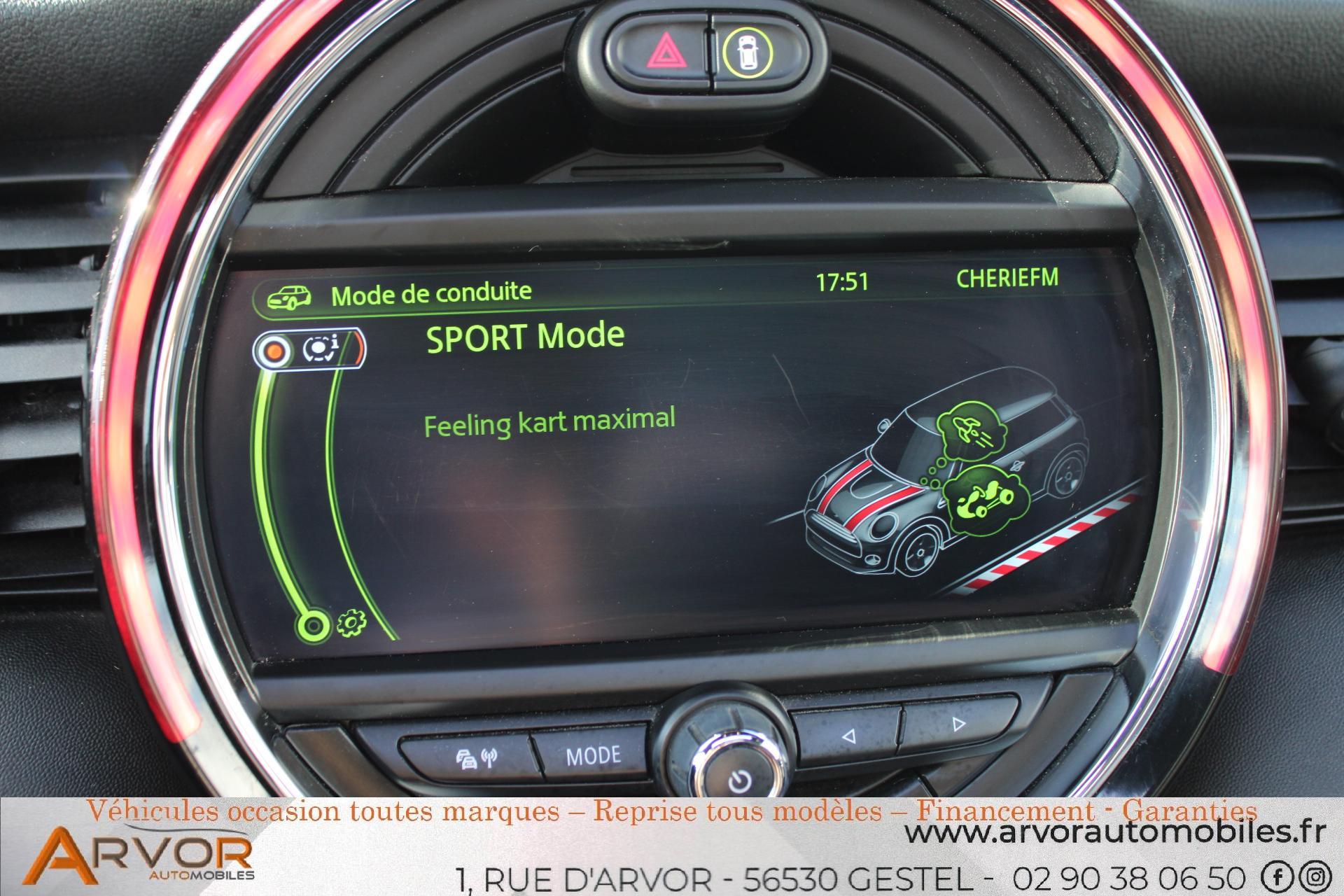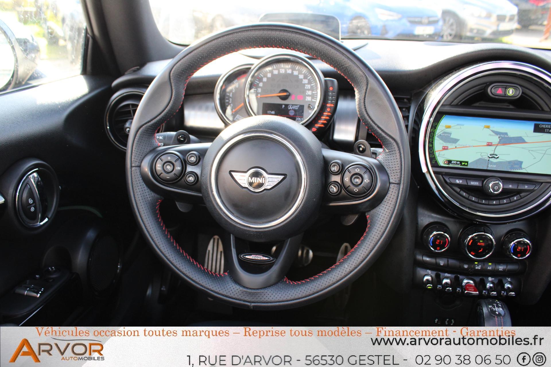 2 roues motricesArrêt ou freinage d'urgence en villeAvertisseur de collision avec un système indiquant 3 niveaux de dangerBarres de seuil spécifiques John Cooper WorksBecquet arrière de toit John Cooper Worksbluetoothcaméra de reculCiel de pavillon anthraciteClimatisation automatique bi-zonedétecteur de pluieDétecteur de pluie et allumage automatique des projecteursfermeture centraliséeJantes en alliage 17'' JCW design Track Spoke argent ou noirKit aérodynamique John Cooper WorksLecture des panneaux de signalisation de vitesse maximum et d'interdictionMINI driving modesMINI Park Assist : Système de manoeuvres automatiquesPack John Cooper WorksPerformance Controlphares antibrouillardrégulateur de vitesseRégulateur/limiteur de vitesse actif opérationnel de 20 à 140 km/hRétroviseur intérieur électrochromeTouches multifonctions avec régulateur de vitesse au volantvitres électriquesVolant Sport gainé cuir John Cooper Works