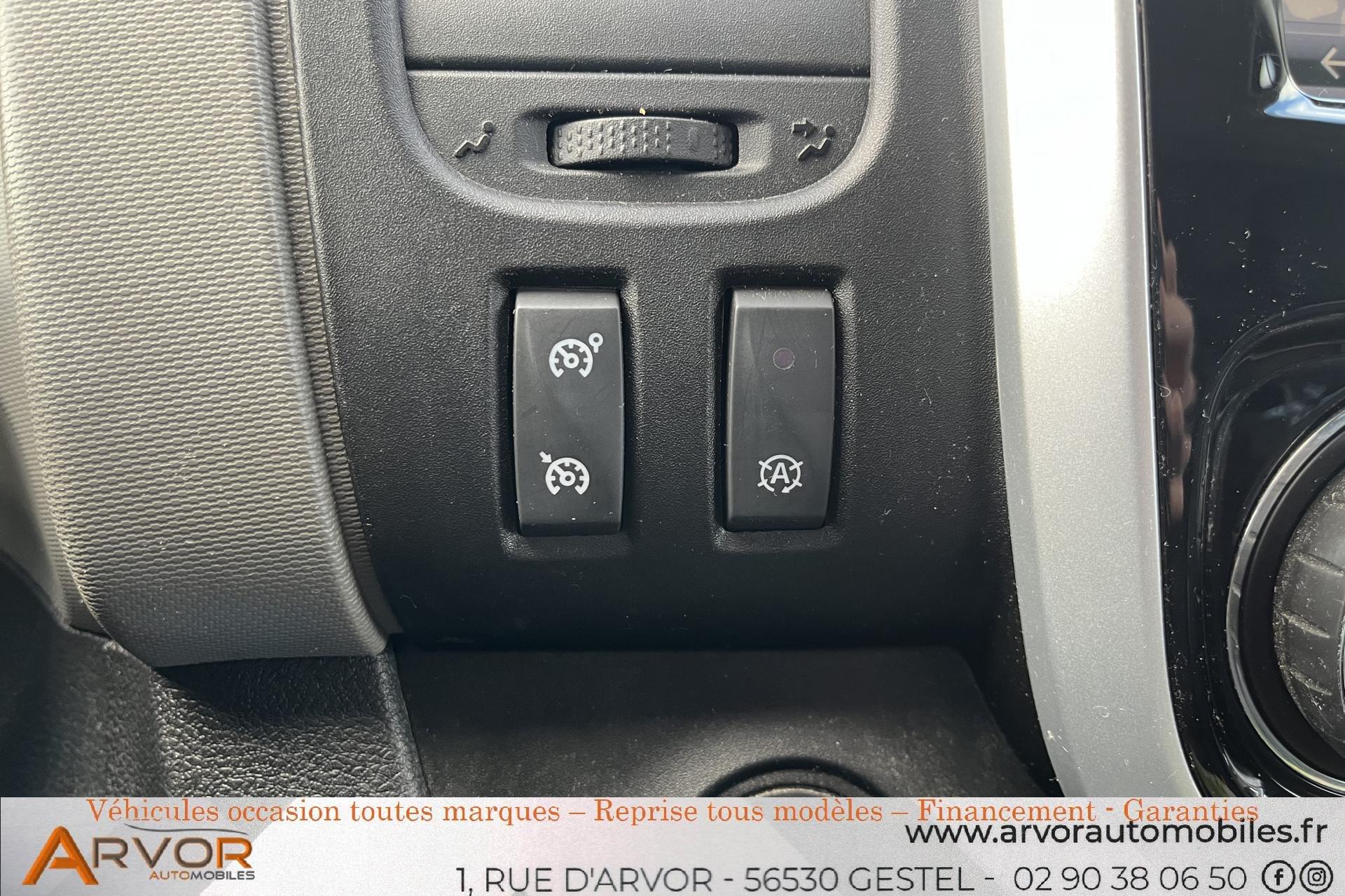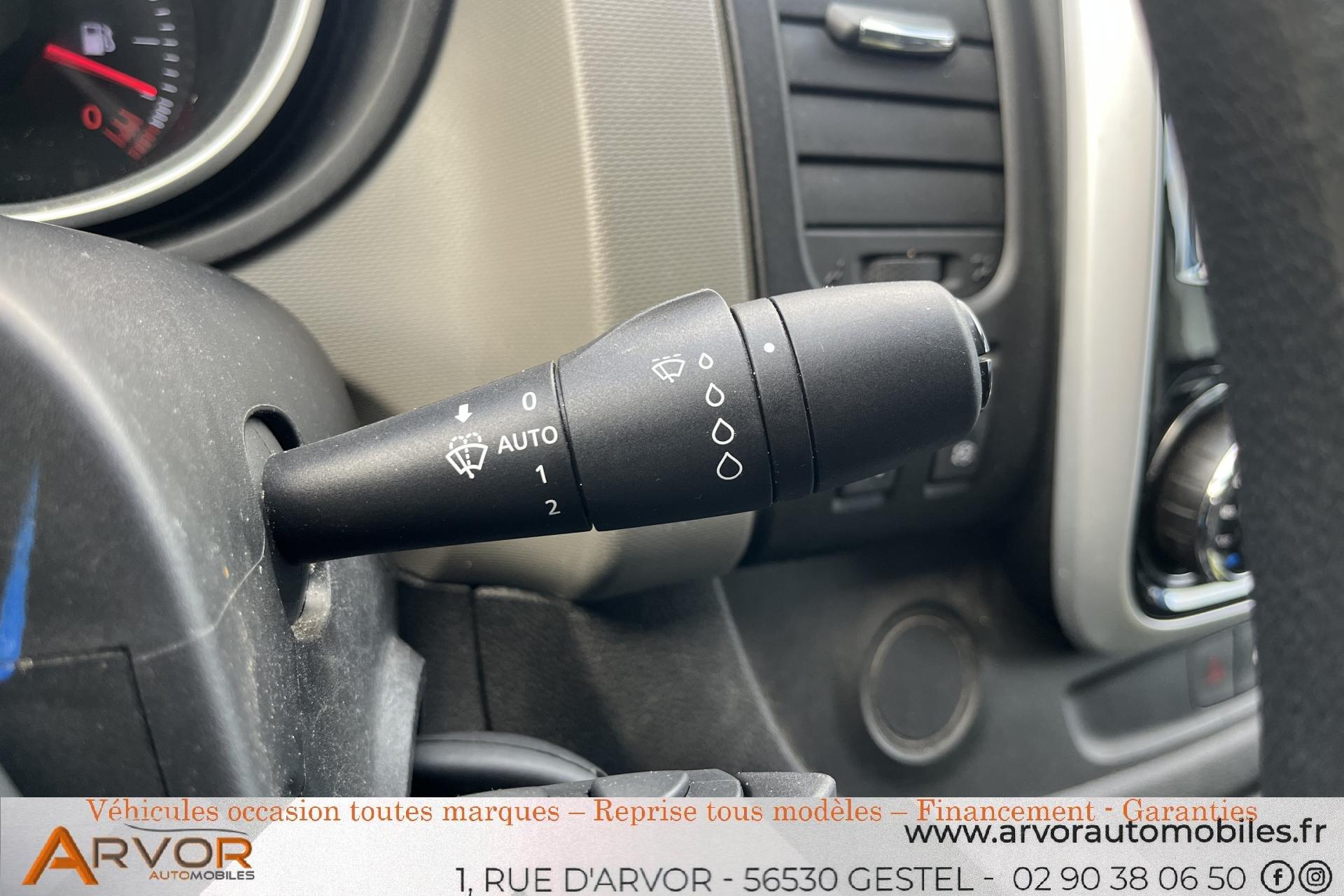 Condamnation centralisée des portes avec télécommande et condamnation automatique en roulantattelagebluetoothclimatisation automatiqueDirection assistée avec volant réglable en hauteur et en profondeurLève-vitres avant électriques, à impulsion côté conducteurMode de conduite Eco avec bouton dOrdinateur de bord : vitesse moyenne, consommations totale / moyenne / instantanée, autonomie, horloge, totalisateurs kilométriques total et partielPack Navigation R-Link EuropePrise 12VSystème Stop & Start